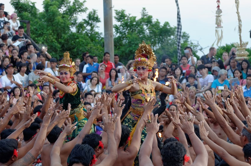 Spectaculaire danse du Kecak dans le théatre en plein air d'Uluwatu